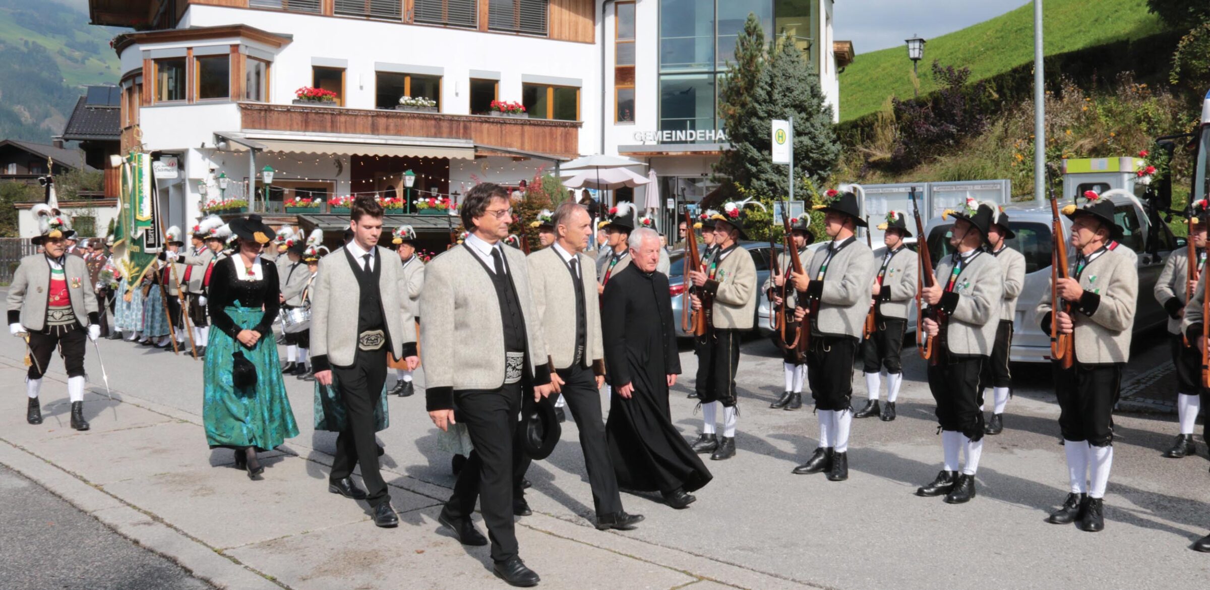 Zum Abschluss nahmen alle Vereine beim Engelbert-Kolland-Platz Aufstellung. Mit der Frontabschreitung und der Ehrensalve der Schützenkompanie für die Ehrengäste und Festteilnehmer klang das Fest aus.