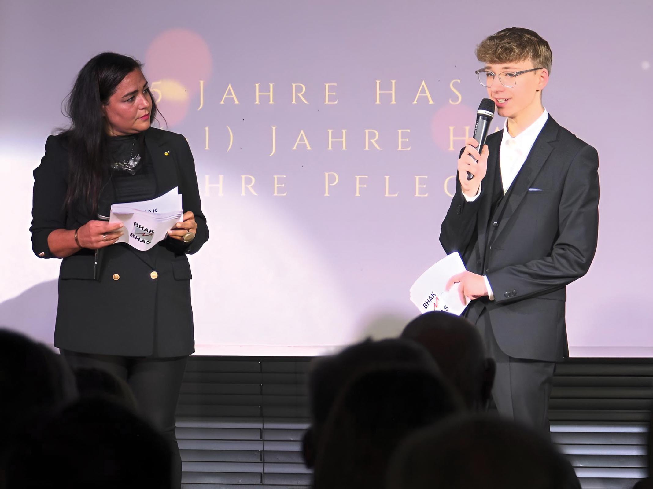 Am Abend fand eine große AbsolventInnenfeier unter dem Motto „Gestern – Heute – Morgen“ statt. Über 400 ehemalige SchülerInnen, LehrerInnen und Gäste feierten gemeinsam ein lebendiges Wiedersehen. In einem „Nostalgieraum“ konnten BesucherInnen in alten Klassenbüchern blättern, während SchülerInnen mit kreativen Videobeiträgen das Thema Schulentwicklung über die Jahrzehnte beleuchteten. Besonders beliebt war auch die Fotobox, die neue Erinnerungen schuf. Ein reichhaltiges Buffet, ein Schulkino, diverse Präsentationen sowie die Vorstellung der neuen Festschrift rundeten das Programm ab und sorgten für eine festliche Atmosphäre.