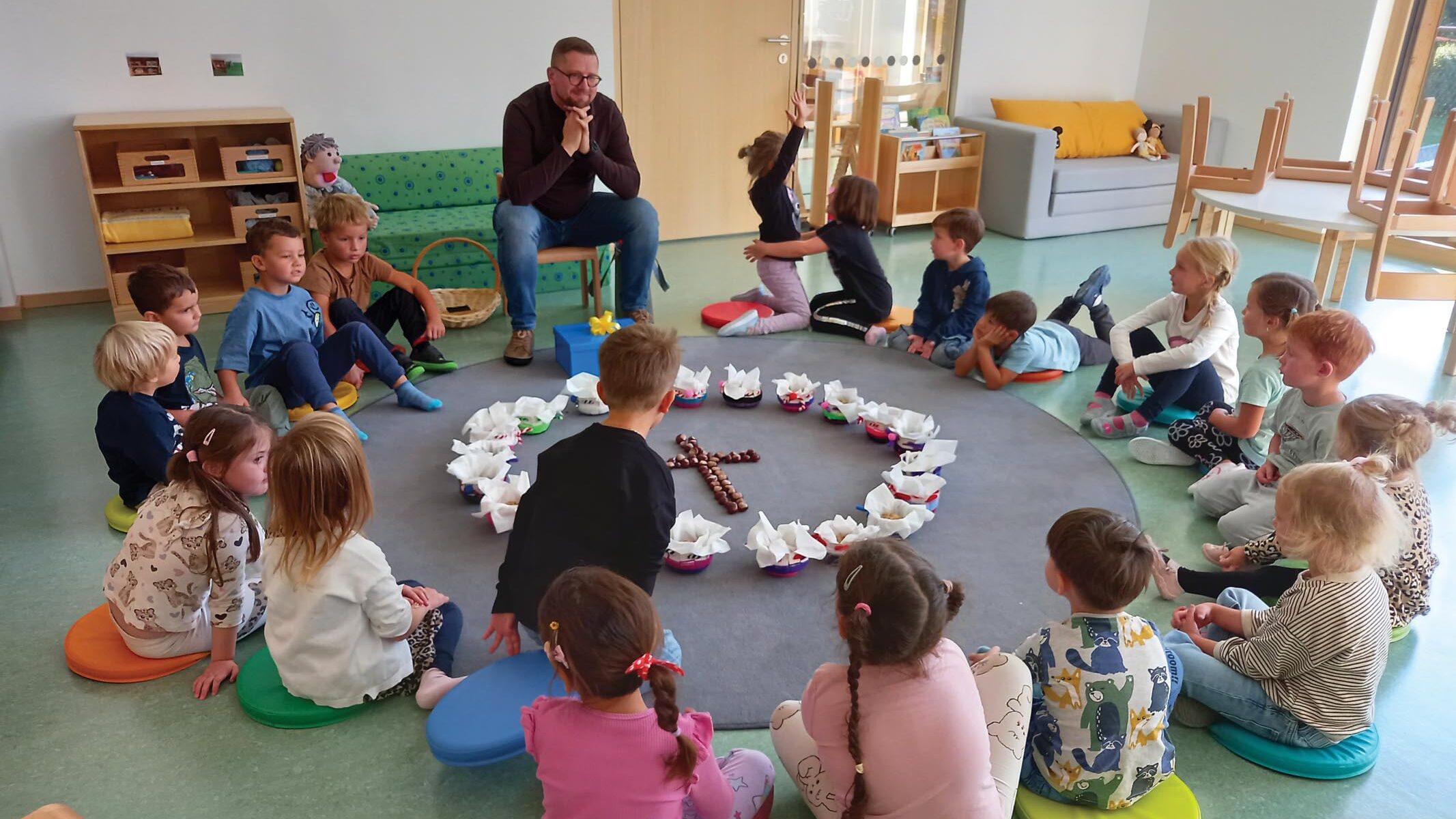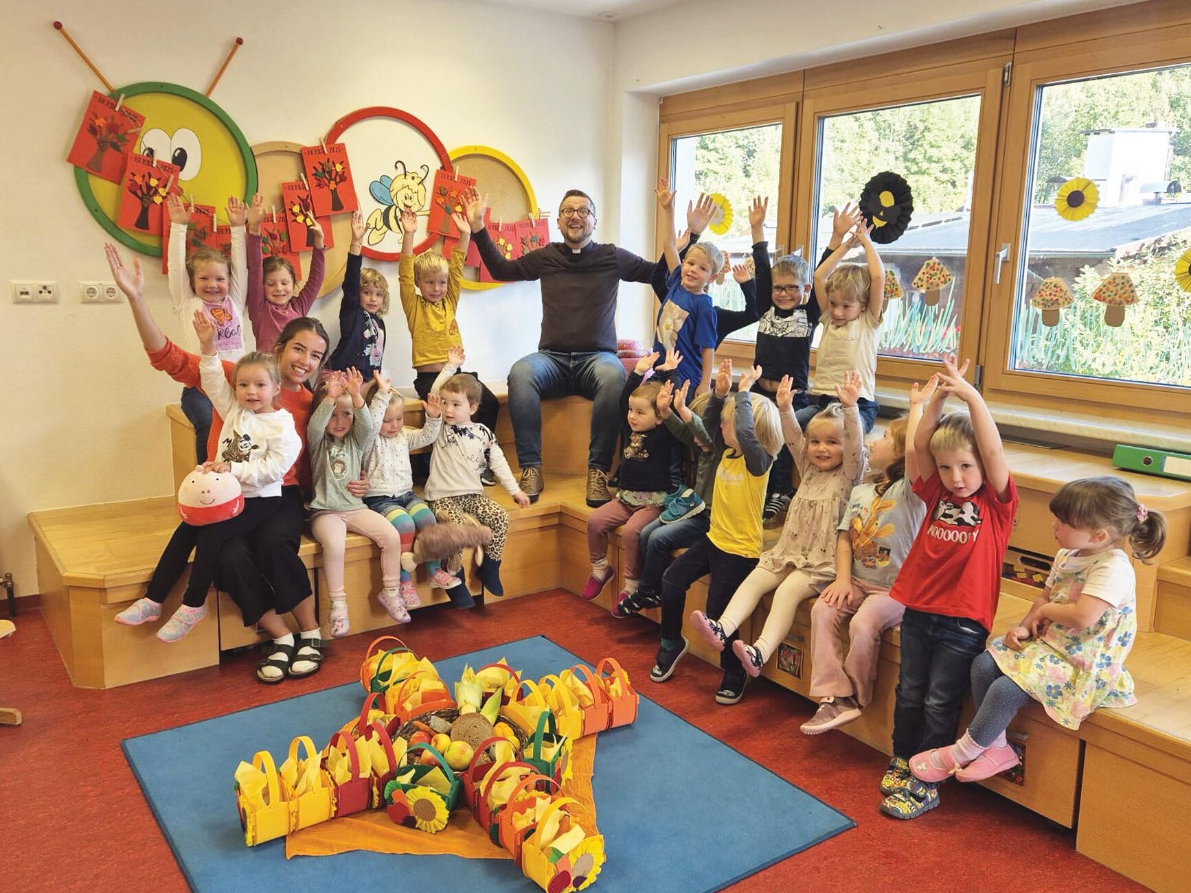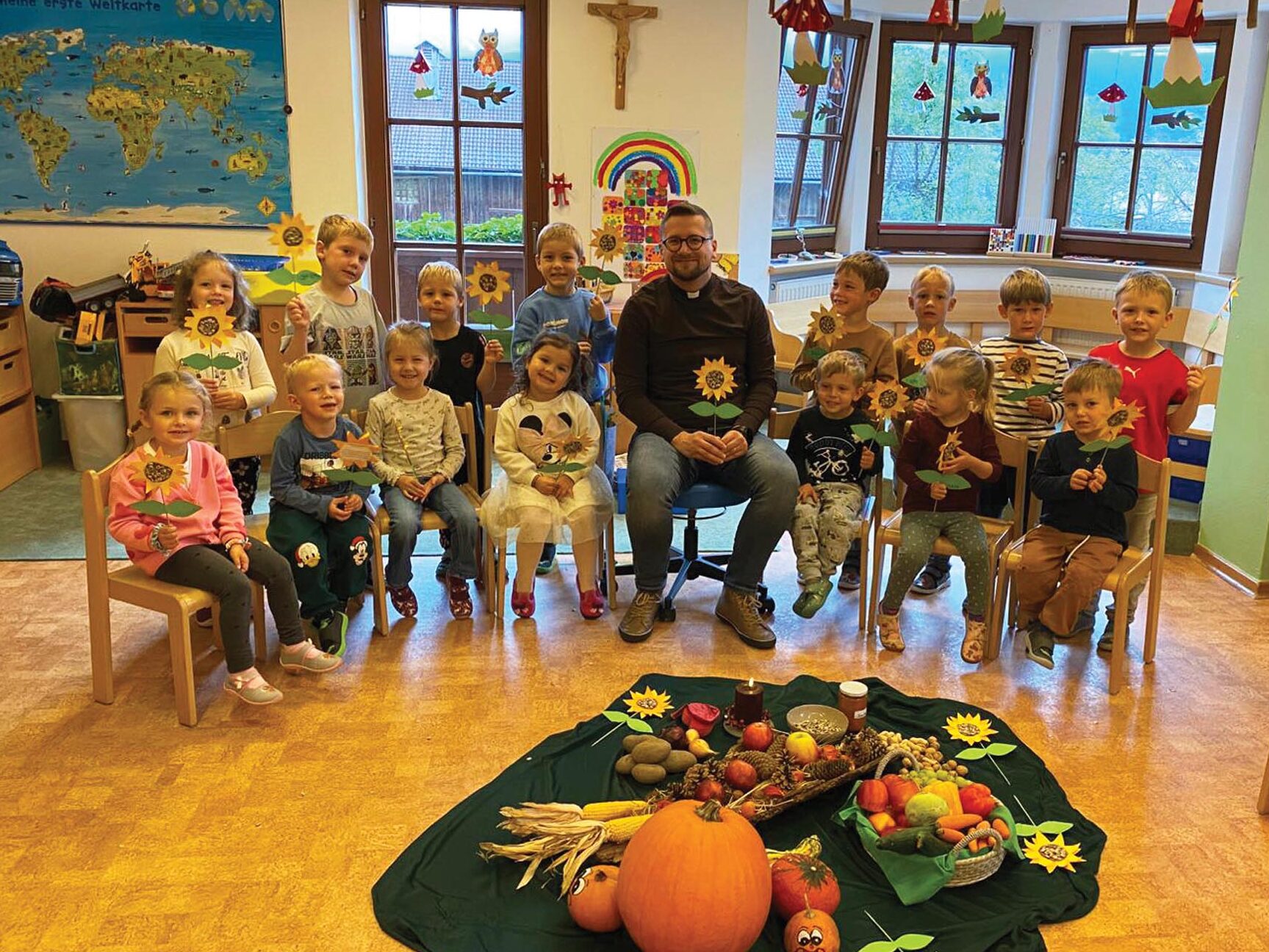 In den vergangenen Tagen besuchte Pfarrer Piotr die Kindergärten im Seelsorgeraum Finkenberg-Hippach-Aschau. Gemeinsam mit den Kindern und Pädagoginnen feierte er kleine, fröhliche Erntedankfeste.