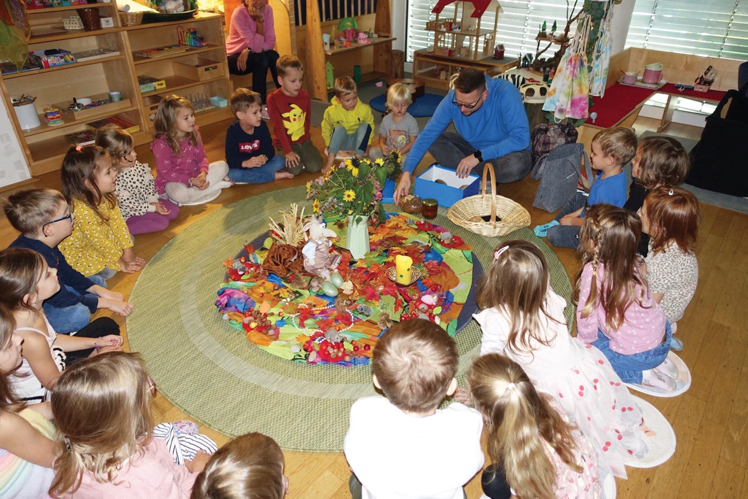 In jedem Kindergarten gab es eine gemeinsame Jause mit Segnung, bei der die Kinder dankbar auf die vielen Gaben der Natur blickten. Mit Liedern, Tänzen und Gebeten brachten sie ihren Dank zum Ausdruck. Besonders schön war, dass manche Kindergärten bereits am Vortag gemeinsam Brot gebacken hatten. Dieses wurde im Fest gesegnet und durfte anschließend von den Kindern mit nach Hause genommen werden –