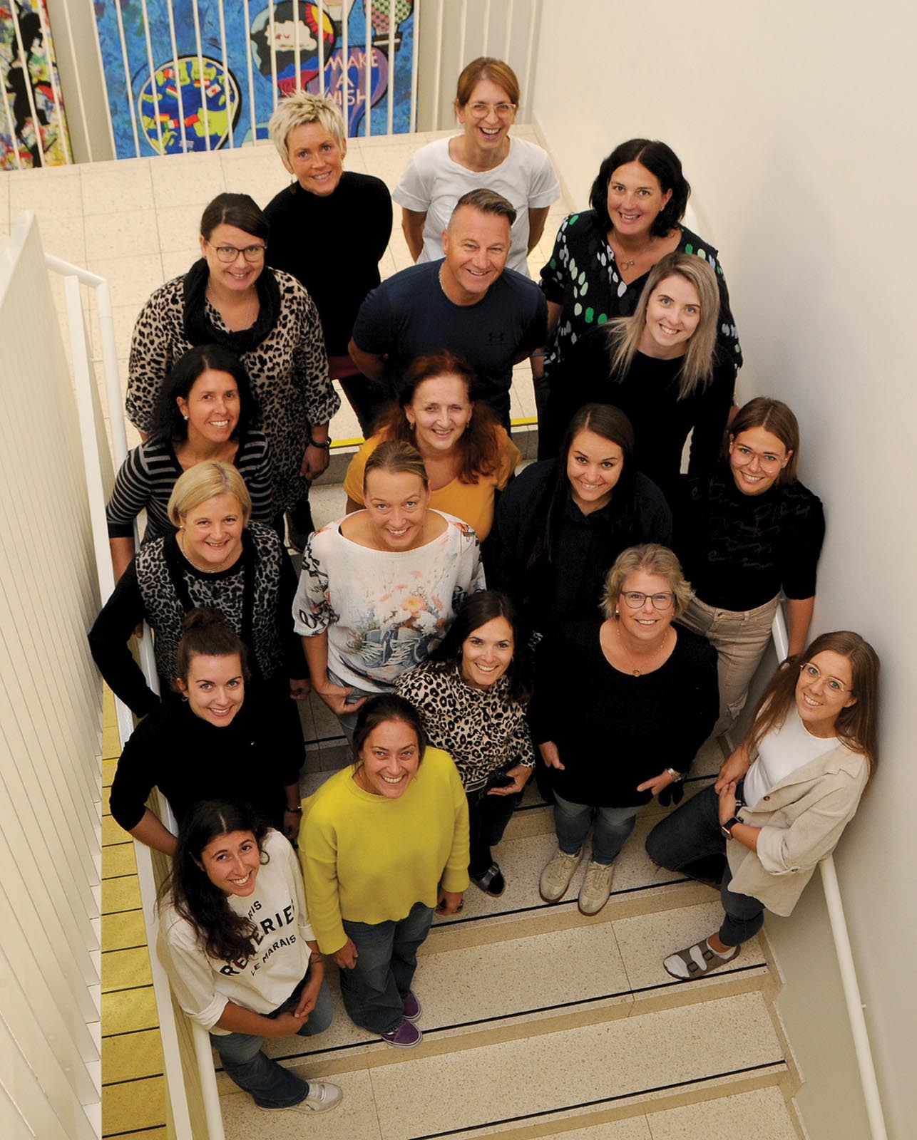Nicht auf dem Foto, aber ebenfalls Teil des Schulteams, sind: Alexandra Müller (Bewegungscoach), Julia Haun, Büyükkal Hüsamettin (islamischer Religionslehrer), Stefan Müller (IT-Beauftragter), Alev Yagmur Karsak (Beratungslehrerin, Bereich Sprachen), Ingrid Figl (Beratungslehrerin, Bereich Hören), Robert Unterweger (Beratungslehrer, Mathematik und Sprache) sowie Karen Pamer (Beratungslehrerin, Bereich Konflikte).