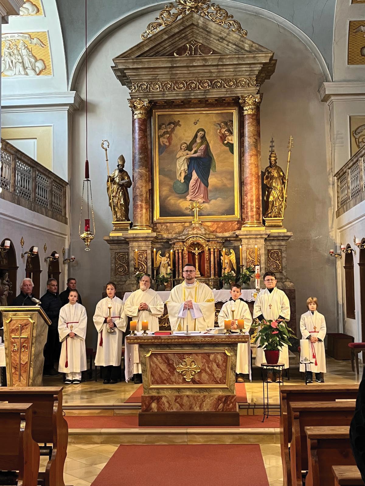 Der Kirchenchor Aschau gestaltete am Christkönigsfest zu Ehren seiner Patronin Cäcilia die Hl. Messe. Zelebriert wurde sie von Pfarrer Piotr, und ihm zur Seite stand Diakon Toni Höllwarth.