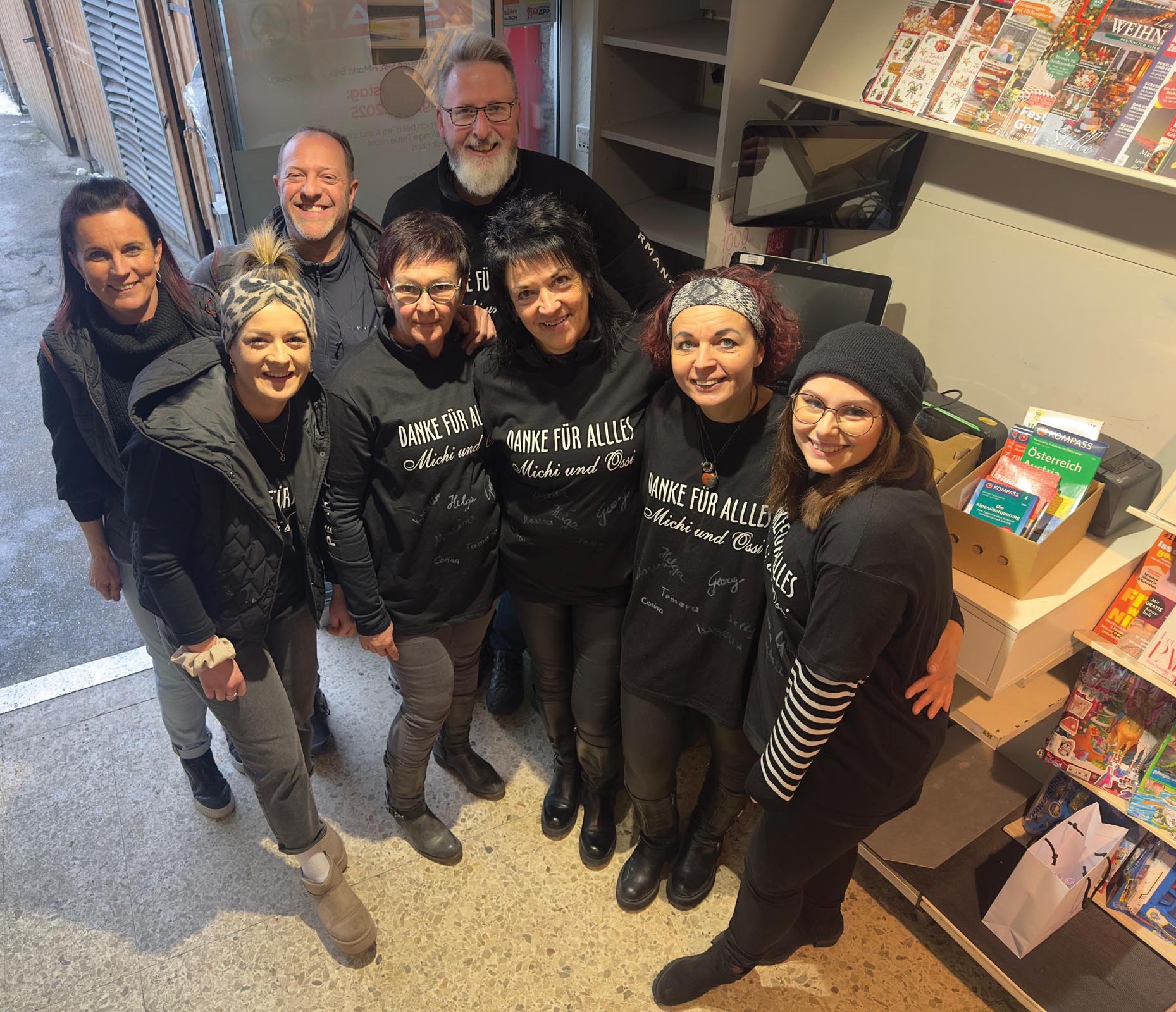 Am Samstag, dem 29. November, dem letzten Öffnungstag, nutzten zahlreiche Finkenberger Vereine die Gelegenheit, um sich bei Klaus, Gertraud sowie Michaela und Ossi für die jahrzehntelange Nahversorgung zu bedanken und ihre Wertschätzung zum Ausdruck zu bringen.