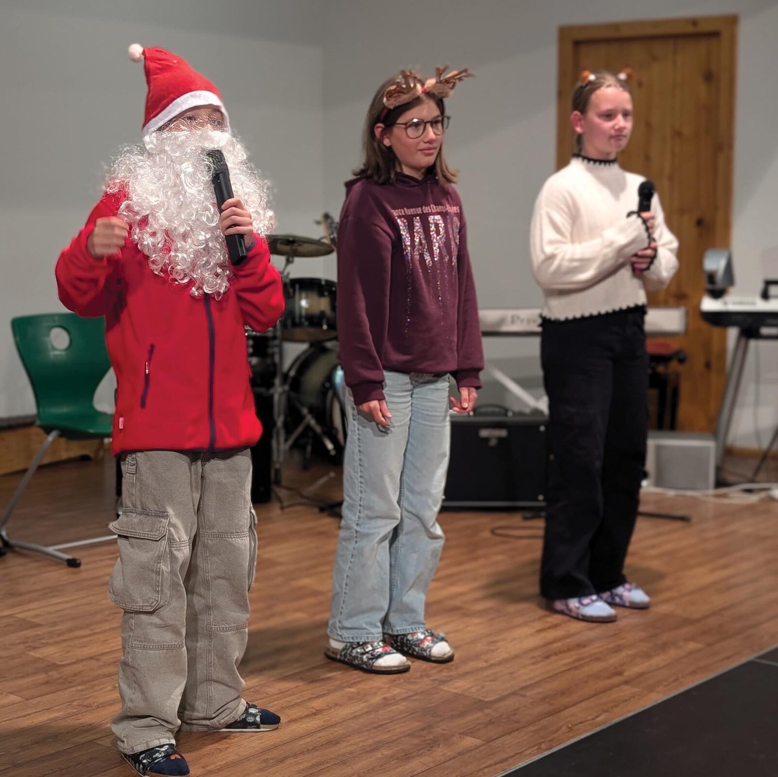 Nachdem der Schulchor in bewährter Weise einen stimmungsvollen musikalischen Auftritt absolviert hatte, trugen die Jugendlichen der verschiedenen Klassen moderne Varianten berühmter Weihnachtsgedichte vor, erfreuten die anderen Kinder mit einer trendigen Fassung der Weihnachtsgeschichte, spielten ein Theaterstück mit dem Titel „Weihnachten fällt aus“, zeigten ihr Können beim Singen und Musizieren und tanzten mit dem Weihnachtsmann, der eigens vom Polarkreis eingeflogen worden war, auf der Bühne.