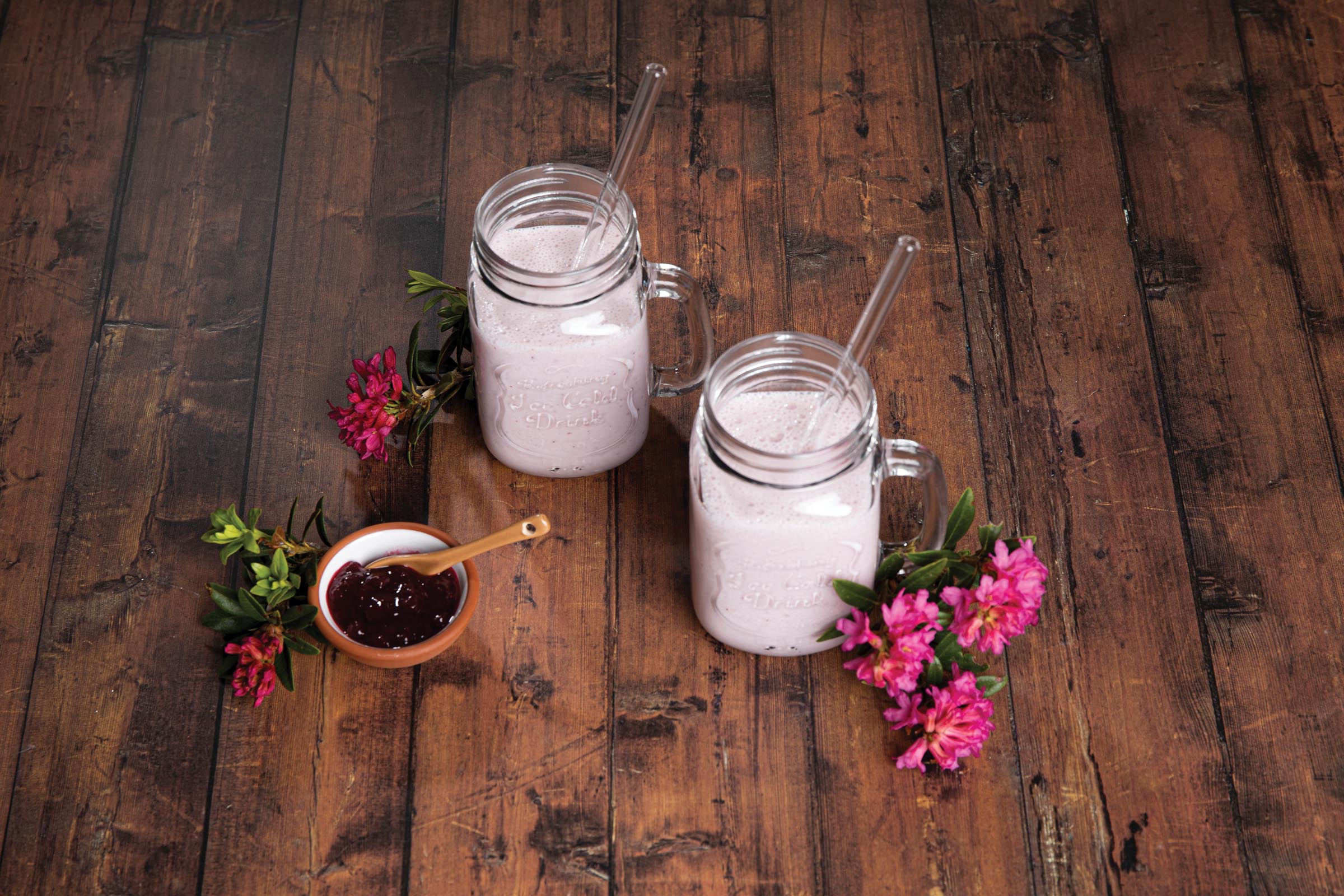 Das brauchst Du: 1 l leichte Heumilch, 200 g leichtes Joghurt aus Heumilch, 6 EL Preiselbeer-Marmelade, frische Preiselbeeren und Minze zum Garnieren
