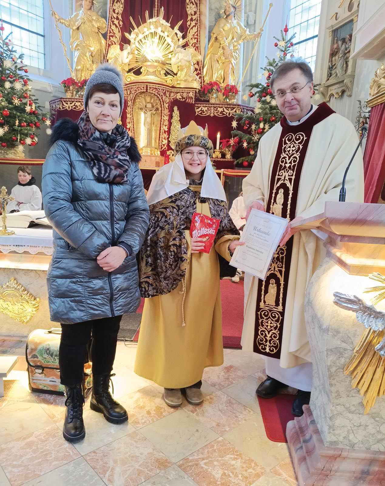 Die Kinder zogen mit ihren bunten Gewändern durch unsere Pfarrgemeinde und sammelten beachtliche € 6.656,32 für die Projekte in Tansania. Gemeinsam schenken wir Menschen in Not Hoffnung! An dieser Stelle ein aufrichtiges Vergelt´s Gott an die Mädchen und Buben, die in den Ferien für diese Aktion unterwegs waren. Auch allen Begleitpersonen, den Gasthäusern und den Frauen, die für das leibliche Wohl gesorgt haben sowie den großzügigen SpenderInnen ein herzliches Dankeschön! Am Dreikönigstag gestalteten die Sternsinger gemeinsam den Festgottesdienst. Pfarrer Proßegger überreichte Magdalena Seekircher eine Urkunde für ihren 5-maligen Einsatz als „Sternsingerkönigin“. Gratulation!