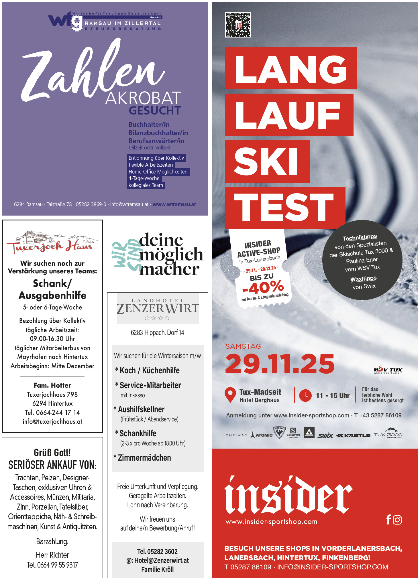 Du suchst einen Job hier im Zillertal und Umgebung, der wie für dich gemacht ist? Oder bist du auf der Suche nach einer Wohnung etc.? Hier findest du eine aktuelle Auswahl von Stellenanzeigen, Immobilien und vieles mehr, die nur auf dich warten! Scroll dich durch.