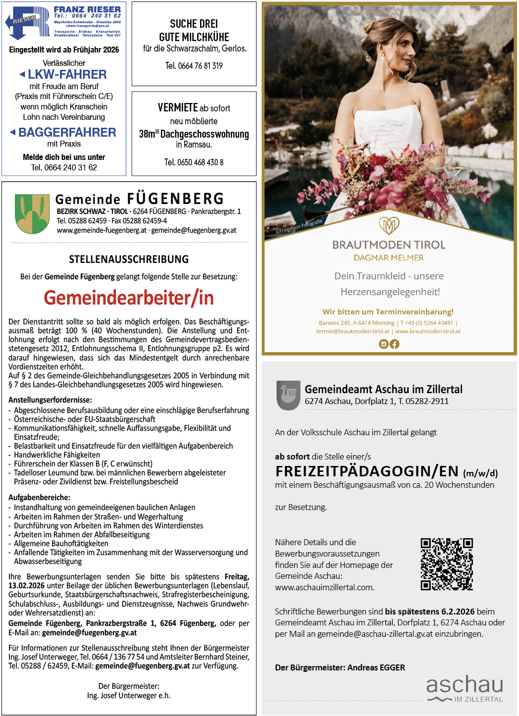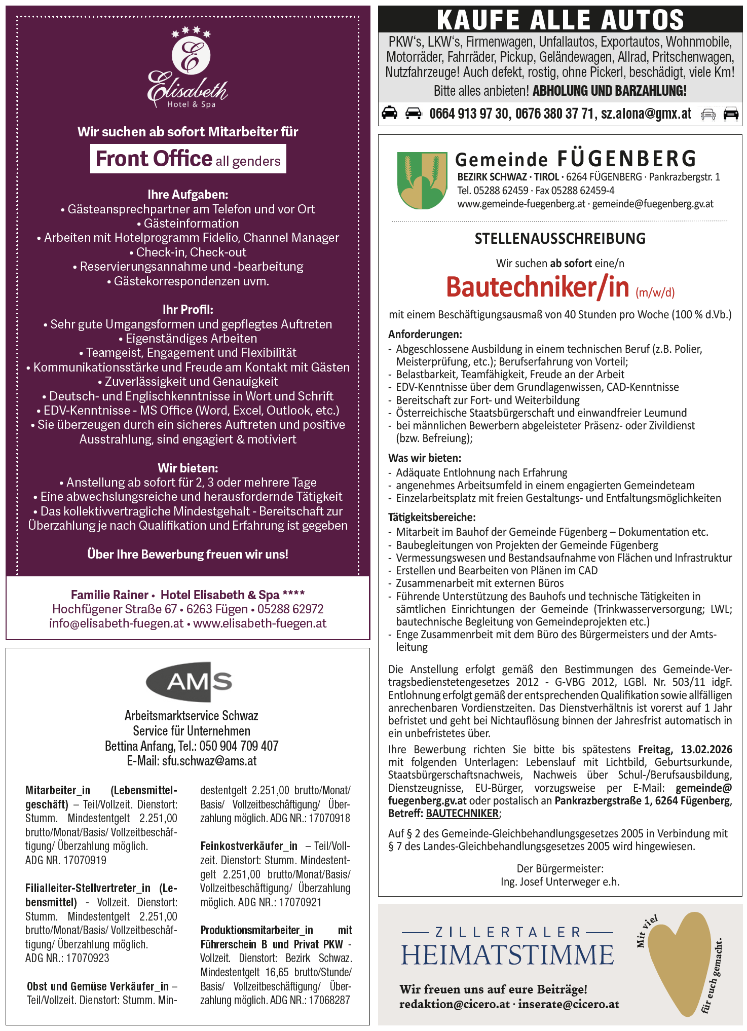 Anzeigen in der Zillertaler Zeitung KW 4
